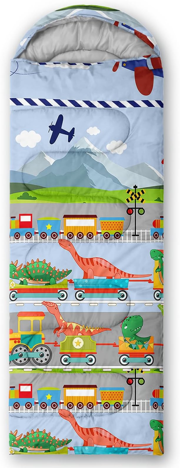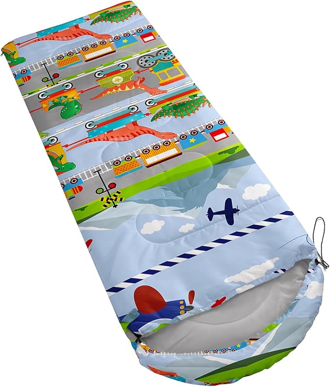 - 【Fits For 3 Seasons】: Size - 31 by 90 inches (W x D). Our Cartoon Aviation sleeping bag can be used in 3 seasons with a design temperature of 32℉-77℉(0℃-25℃). These Dinosaur Train bags also have a weather resistant waterproof design to keep you warm and prevent you from any dampness.