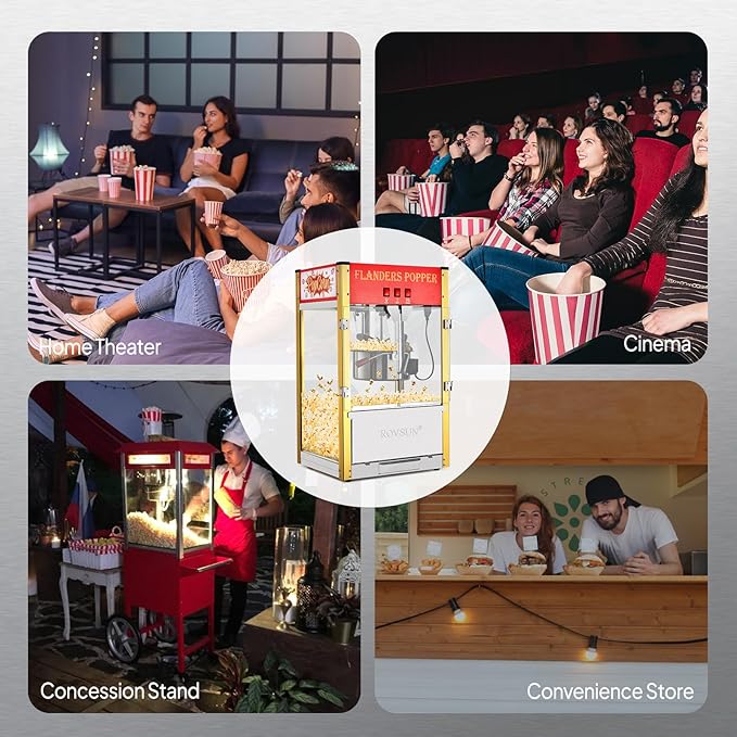 - WIDE APPLICATIONS: The popcorn maker is ideal for home and commercial use in movie theater, home theater, parties, etc. It is also a good choice as a gift for families or friends. We provide the 12-month warranty for the popcorn maker, if you encounter any product after-sales problems, please don't hesitate to contact us