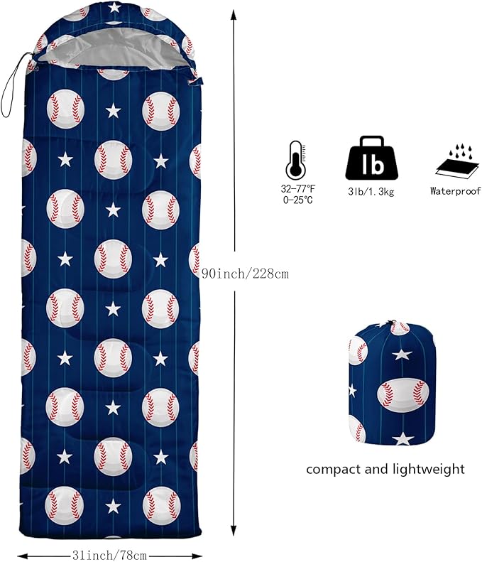 - 【Lightweight and Compact Package】: Pack Weight is 3lbs, the package size is cylinder 11.8 by 13.12 inches and would take up less space. Convenient to carry along for any outdoor adventures, class camping trip, the aquarium, summer camp, couch surfing, jam bags, office crashing, and as an emergency blanket for vehicles.