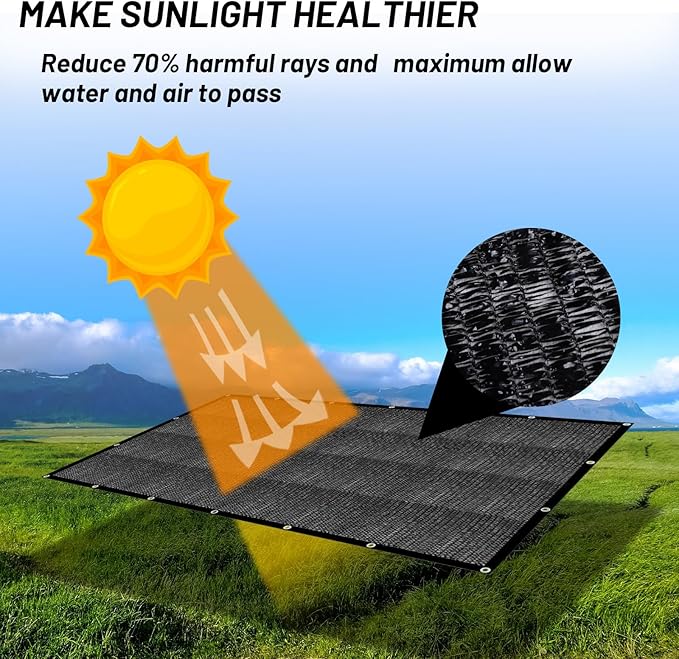 - ??0% Shading Rate?‘Made of 100% New High Density Polyethylene (HDPE) fabric material, has a shading rate up to 70% can avoiding direct sunlight while allowing free air circulation.