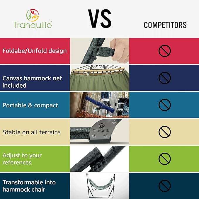 - PATENTED INNOVATIVE DESIGN: Proudly patented for its smart, tool- free setup in just 30 seconds, the Tranquillo Hammock with stand offers effortless outdoor relaxation. Easily adjustable for perfect comfort, built with durable materials for long-lasting use