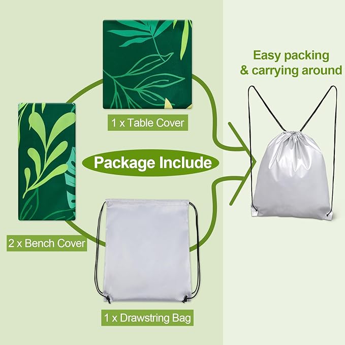 - 【EASY INSTALL & WINDPROOF】Both table cover and bench cover designed with all around elastic, not only can prevent unexpected movements and stay firm in windy conditions, but also easy to install and uninstall by yourself, so your happy picnic time won't be disturbed.