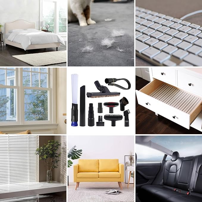 - DURABLE MATERAIL & WIDE USAGES: Crafted from premium ABS plastic and natural horsehair, these universal vacuum attachments ensure long-lasting performance. Brush attachment for shop vac are versatile and suitable for various surfaces like carpets, hardwood floors, sofas, vents, cars, and pet hair removal