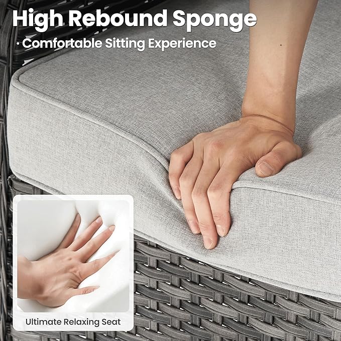 - Thickened Outdoor Cushion: 3.54 inches upgraded high-density and high resilience sponge cushions for comfortable sitting and support. Breathable fabric is water-resistant and and the zipper design is removable and washable