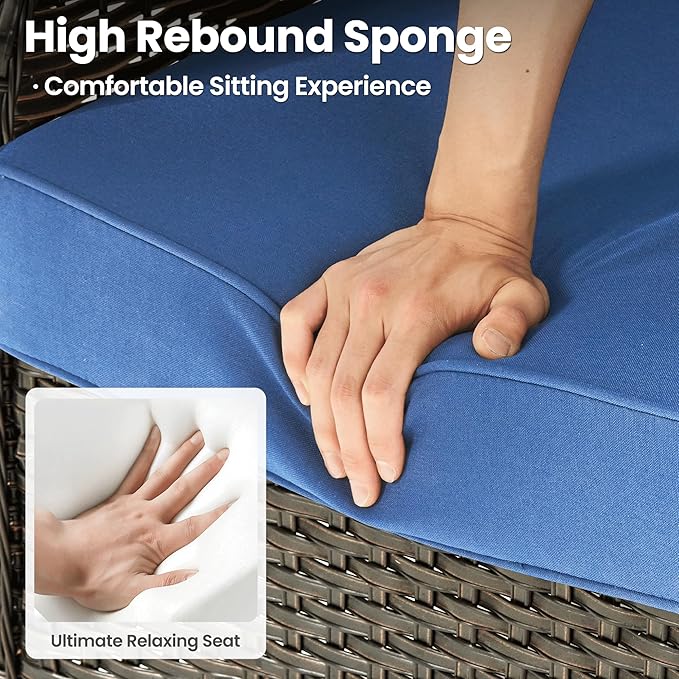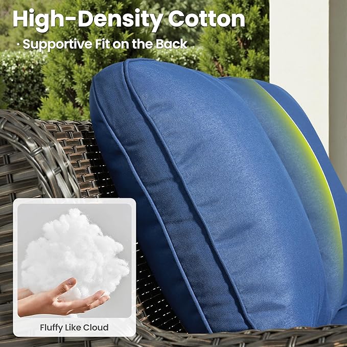 - Thickened Outdoor Cushion: 3.54 inches upgraded high-density and high resilience sponge cushions for comfortable sitting and support. Breathable fabric is water-resistant and and the zipper design is removable and washable