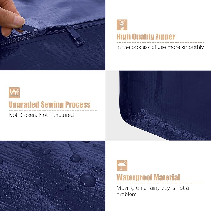- Enhanced Quality: Designed for reusability and durability, these bags are water-resistant and more robust than cardboard boxes, plastic bins, and other containers, ensuring your items stay safe and secure while in transit.