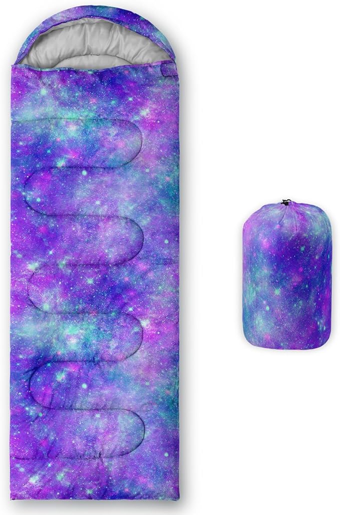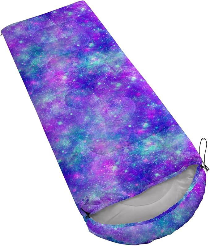- 【Fits For 3 Seasons】: Size - 31 by 90 inches (W x D). Our Purple Tie-Dye sleeping bag can be used in 3 seasons with a design temperature of 32℉-77℉(0℃-25℃). These Blue Shining Star bags also have a weather resistant waterproof design to keep you warm and prevent you from any dampness.