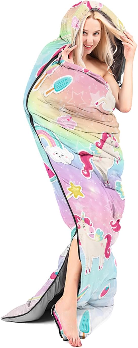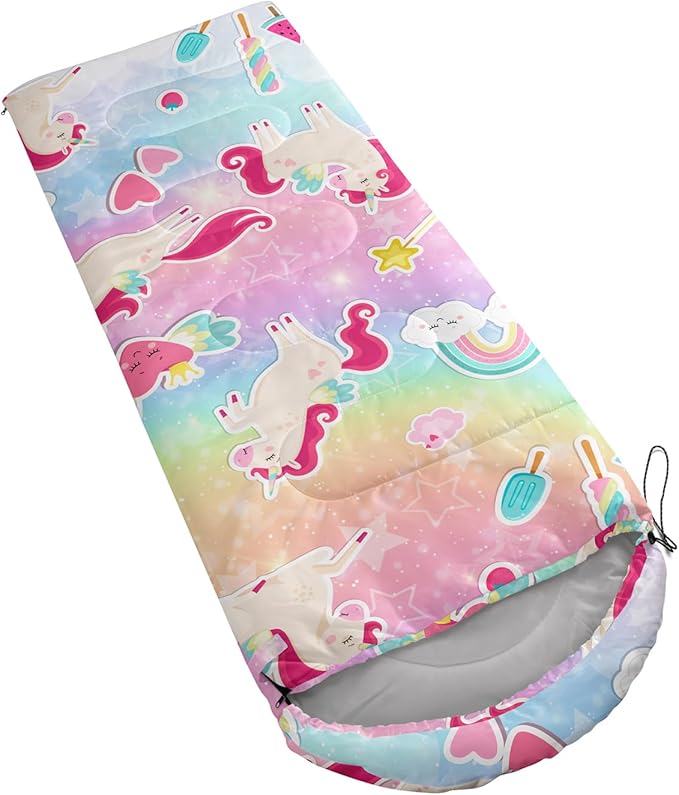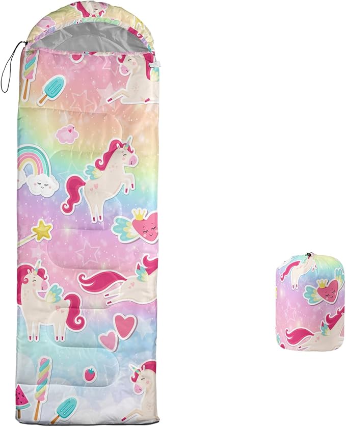 - Girls Unicorn Great For All Seasons- Our camping sleeping bags are designed to give you a good night's sleep. Ideal for spring, summer, fall, and winter, rated from 32°F to 77°F (optimal comfort temperature is 50°F to 65°F). Stay comfortable and warm in any condition at normal altitude. Can be used for any outdoor adventure, class camping, summer camps, couch surfing, indoor blanket, and as an emergency blanket for vehicles.