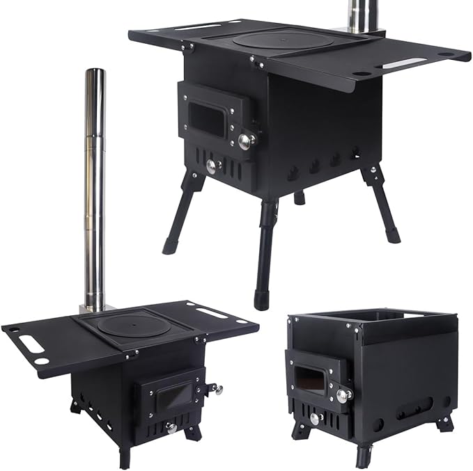 Outdoor Camping Stove Portable Hot Tent Stove Fire Stove Outdoor Cooking Camping BBQ Accessories(Black Small)