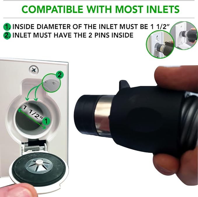 - COMPATIBILITY: Compatible with most existing inlet with 1. 5'' inside diameter and 2 low-voltage pins (prongs) inside