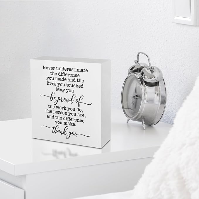 Inspirational Retirement Gift Office Supplies Rustic Desk Decor White Wooden Box Sign Positive Thank You Farmhouse Wood Plaque Coworker Leaving Cubicle Accessories Home Shelf Decorations
