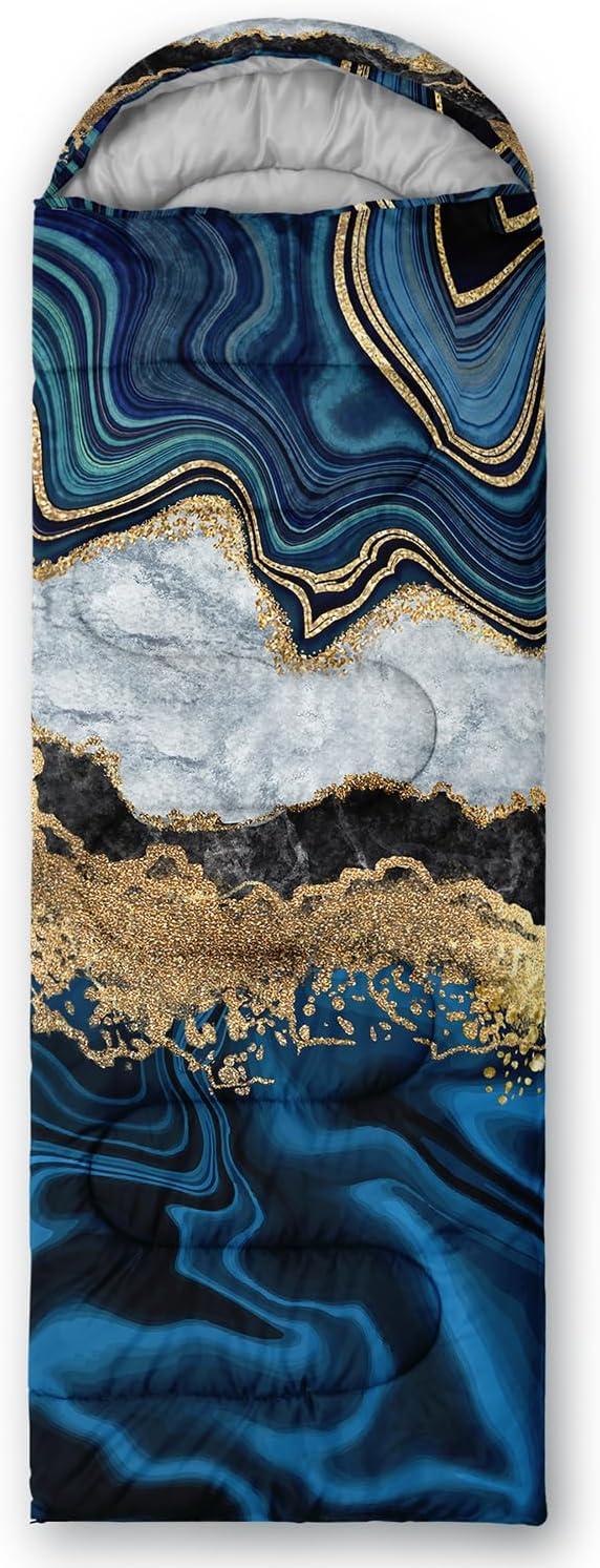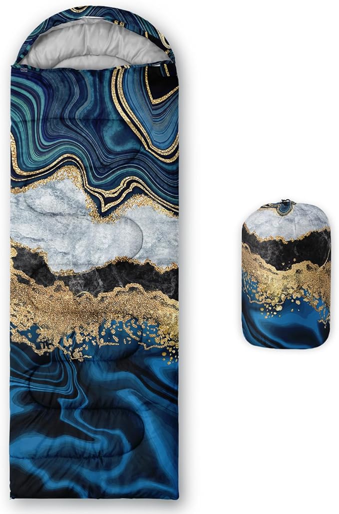 - Premium Material - The camping sleeping bag is made of premium 220T ripstop microfiber fabric,comfortable and breathable,lined with 220T cotton pongee. The waterproof outer protective shell is made of a unique hexagonal design and high-quality Material with double S-stitching and microfiber filling for optimal warmth and insulation to protect you from the elements. The bright colors are loved by boys and girls,great for kids and adults alike!