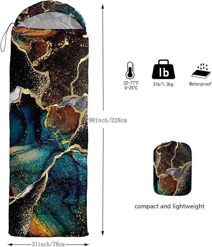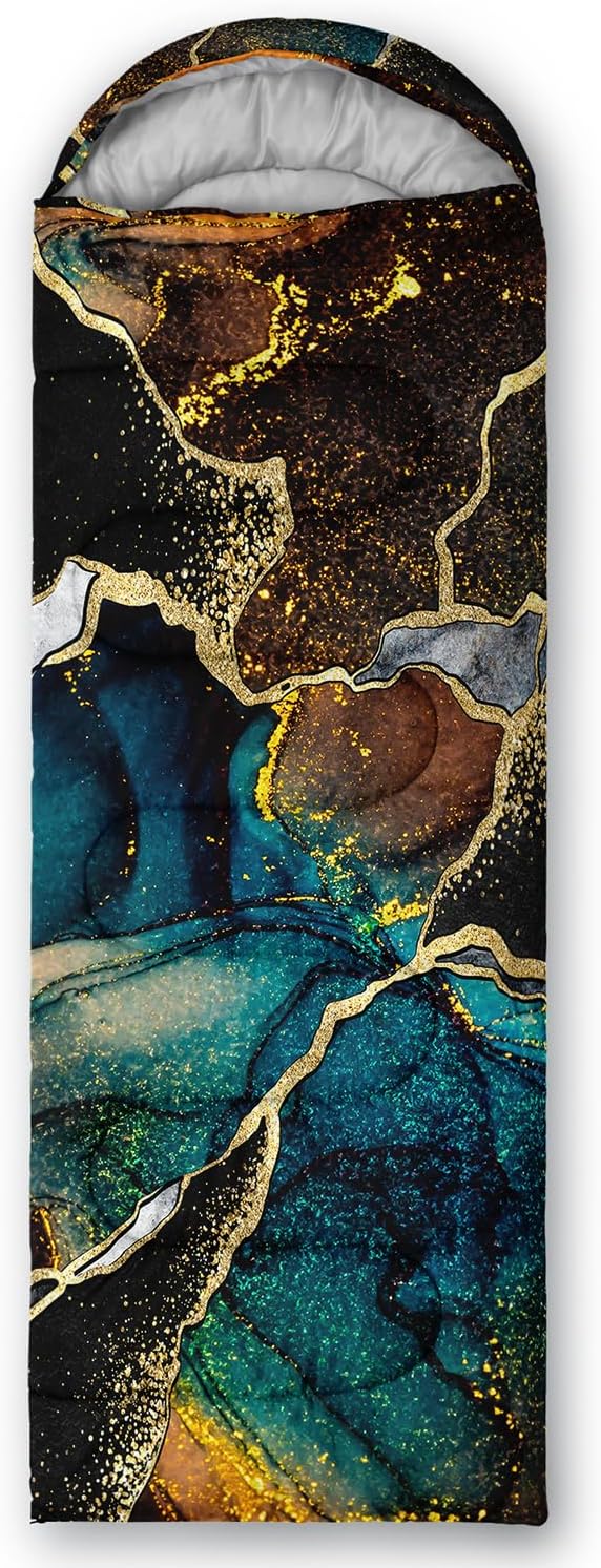 - Premium Material - The camping sleeping bag is made of premium 220T ripstop microfiber fabric,comfortable and breathable,lined with 220T cotton pongee. The waterproof outer protective shell is made of a unique hexagonal design and high-quality Material with double S-stitching and microfiber filling for optimal warmth and insulation to protect you from the elements. The bright colors are loved by boys and girls,great for kids and adults alike!