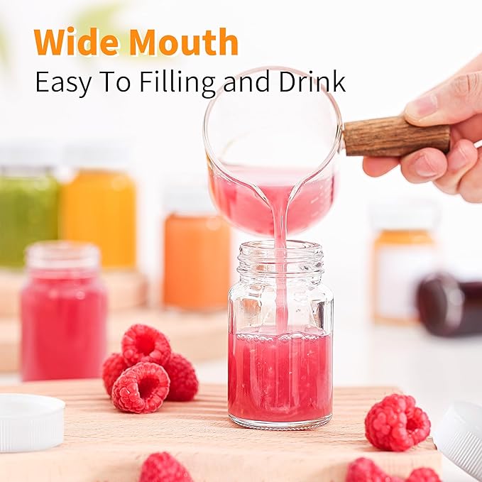 - Lightweight: Our 2 oz/60 ml small glass bottles are perfect for storing juicing, ginger, wellness or other shots, potion, oil, beverage and samples, syrup, salad dressings, seasonings, and other kinds of foods!