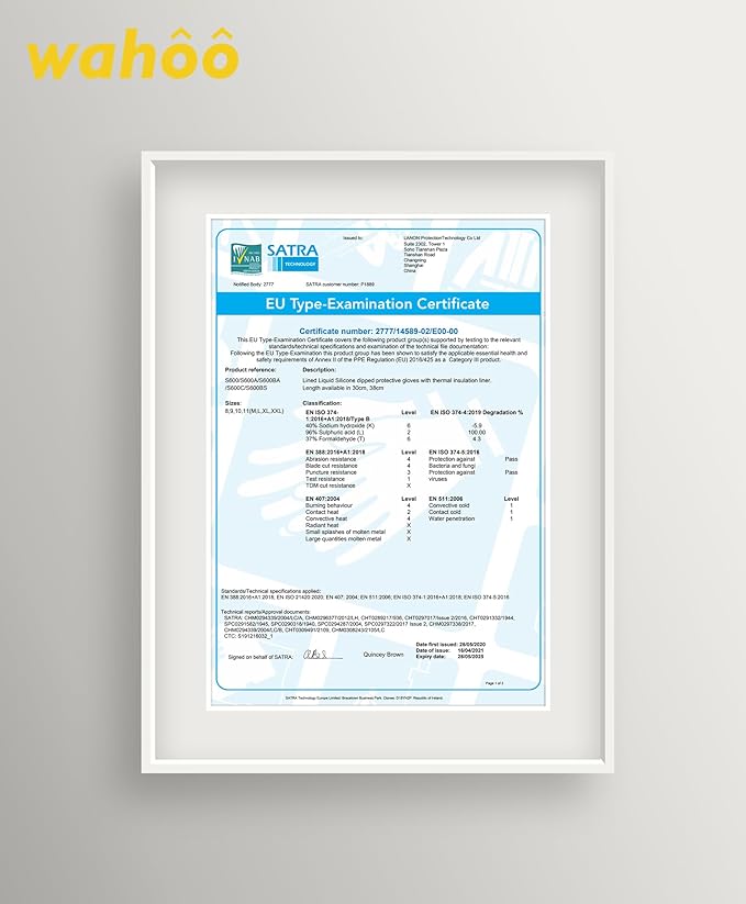 - Next Level Performance - wahoo silicone oven mitts for hand protection are tested in accordance with EN 388:2016+A1:2018, EN 511: 2006 contact cold, EN407:2004 contact heat, and meet CA Prop.65 regulations for phthalates. We offer different sizes medium, large, xl, xxl.