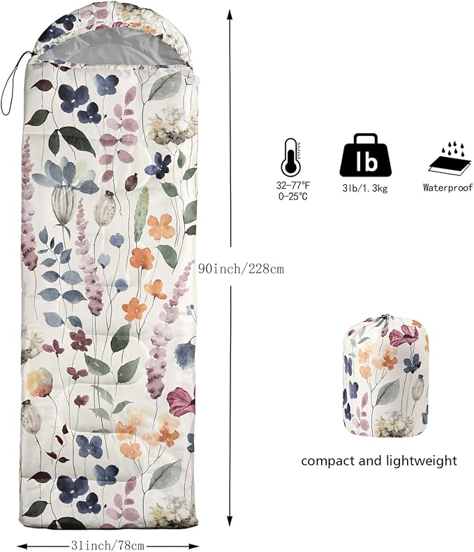 - Weed Flowers sleeping bags For All Seasons- Our camping sleeping bags are designed to give you a good night's sleep. Ideal for spring,summer,fall,and winter,rated from 32°F to 77°F (optimal comfort temperature is 50°F to 65°F). Stay comfortable and warm in any condition at normal altitude. Can be used for any outdoor adventure,class camping,summer camps,couch surfing,indoor blanket,and as an emergency blanket for vehicles.