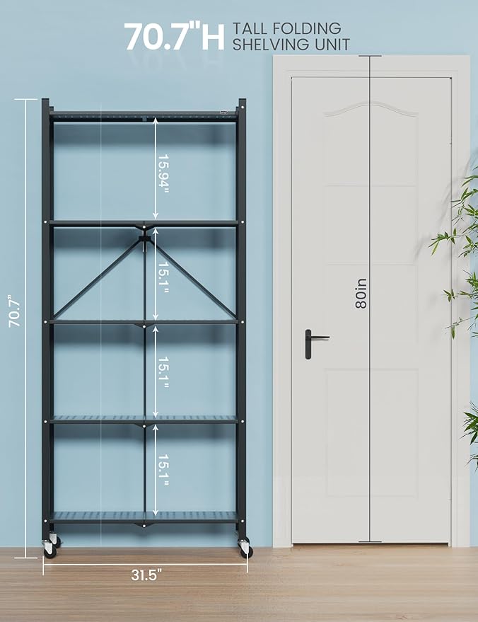 - [1-Min Tool-Free Assembly] No bolts, no tools, no frustration! Unfolds from 3.9-inch flat pack to 70.7" shelving in 60 seconds - 10x faster than traditional shelves. Perfect for last-minute garage cleanups, holiday guest prep, or emergency storm supplies organization.
