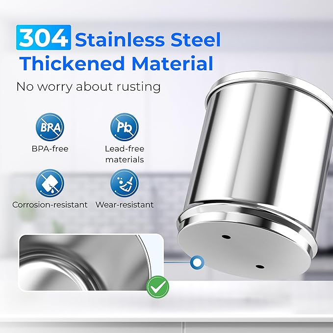 - Comprehensive accessories set: This filter system ensures safe, stylish use with 304 stainless-steel housing for durability, includes a leak-proof metallic spigot, non-slip stand for stability, and comes with all necessary accessories.