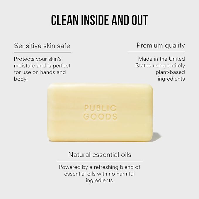 Public Goods Bar Soap for Women & Men | Hand & Body Soap for Sensitive Skin | Natural Fragrance from Organic Essential Oils | Non Toxic Soap for Bath & Shower | Vegan Friendly | Made in USA | 5 Oz