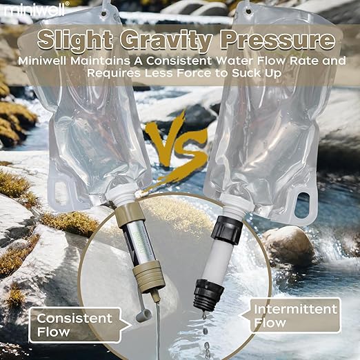 - Enhanced Storage Edition: The Miniwell portable water filter L630 now comes with upgraded vacuum packaging, enabling it to be stored for up to 25 years. This reduces the need for frequent replacement of emergency supplies and allows you to conveniently store it alongside your emergency dry-freeze food. With just one purchase, you can be prepared for emergencies for 25 years.