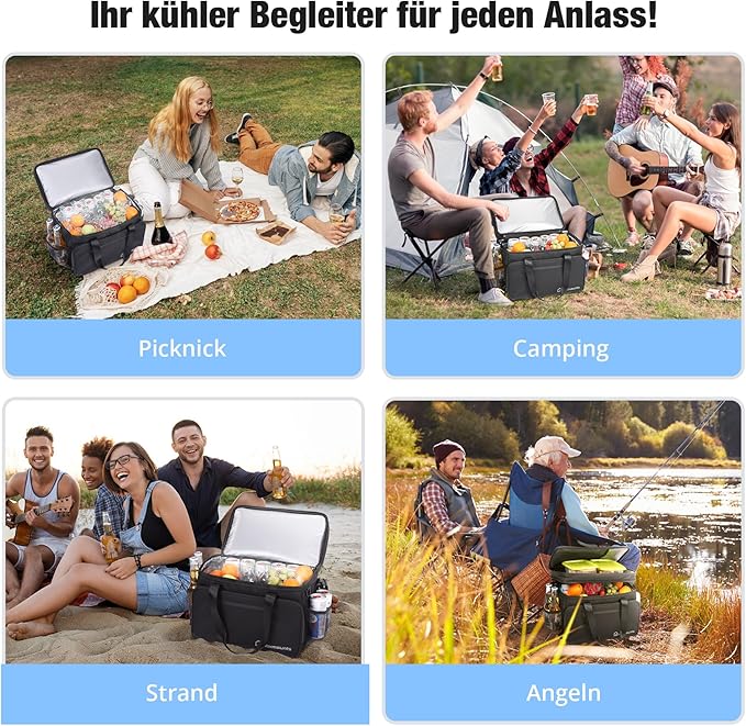 - Enjoy Fresh Cooling Anytime: WARMOUNTS collapsible cooler bag is built with 5 layers of thick insulation to keep drinks and food chilled for up to 20 hours. Great for long hikes, beach days, or camping trips—your refreshments stay frosty wherever adventure takes you