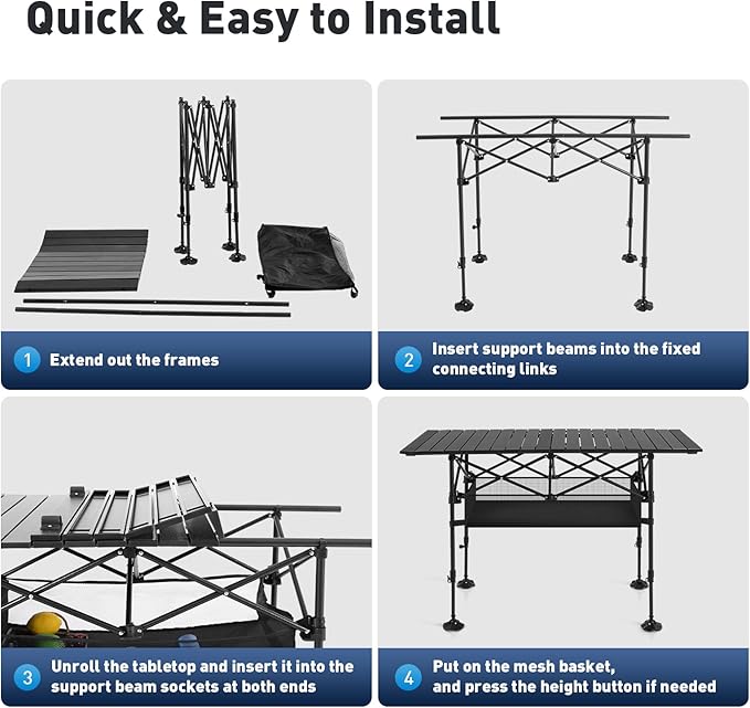 - 【Durable Outdoor Performance】Our aluminum camping table excels in waterproof, rust-resistant, scratch-resistant, and stain-resistant performance, Customers are covered by 7*24 professional after-sale service. Please don't hesitate to reach out if you have any questions!