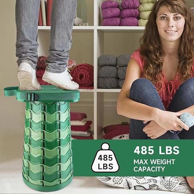 - 【SAFE & STEADY】-With high-strength heavy-duty eco-friendly Nylon material, the retractable folding stool has a strong bearing capacity and it can hold up to 400lbs, which will meet your needs effortless. Due to great technology and design, the durable telescopic stool has 110 tight connecting clasps and nonslip bottom, so you can use it safely.