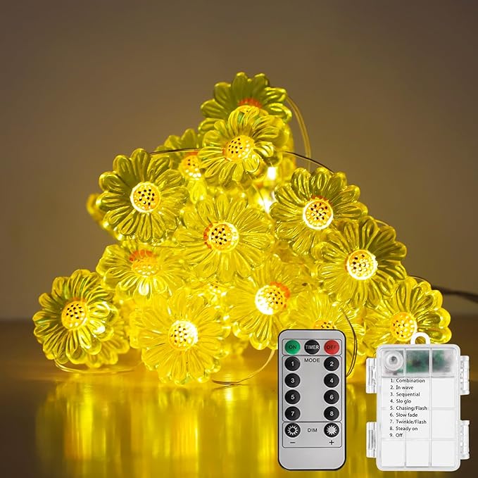 - 1.Sunflowers Copper String Lights - The cute ornament of sunflower, which is vivid without losing the childishness and innocence. The design of the copper wire is more flexible than the general string light. Each 30 LED light with low voltage, no heat at all. No need to worry about giving it as a gift to your kids, girls, boys, Teen, friends, etc.