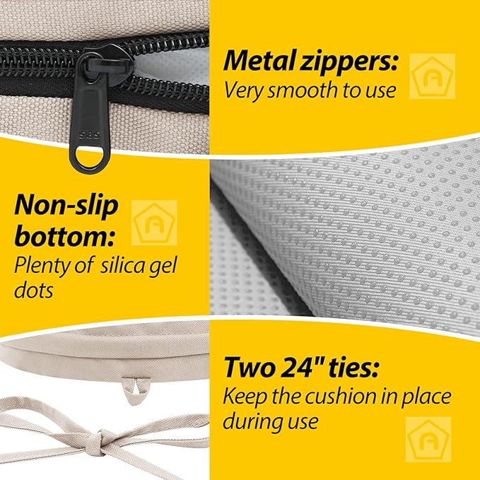 - Waterproof & Removable Cover: Durable, breathable polyester with a waterproof coating, UV protection, and fade resistance for lasting outdoor use. The zippered cover allows easy cleaning and replacement, with hidden zippers for a seamless look