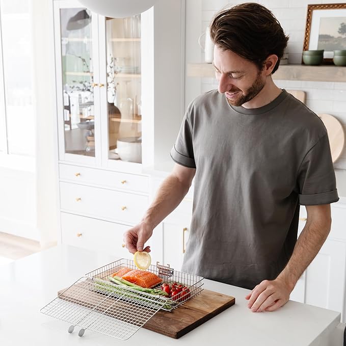 - 【ENGINEERED FOR DURABILITY & PERFORMANCE】Crafted from premium 304 stainless steel, our grill nets are built to last, making them the strongest and most reliable grilling companions on the market. Don't settle for flimsy grilling baskets that bend & wear out after a few uses. The 0.8mm thick cylinder mesh ensures that your delicious food stays intact while allowing those mouthwatering grill marks to sear through to perfection.