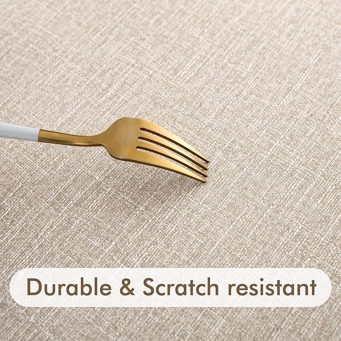 Fitable 2 Pack Faux Linen Round Table Cover with Flannel Backing, Vinyl Fitted Elastic Tablecloth Waterproof Table Cloth for Picnic, Party, Indoor Dining, Nature (Fit for 45"-56" Round Tables)