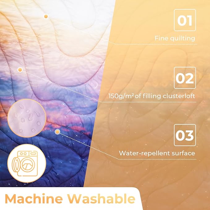 KingCamp Ultralight Camping Blanket, Packable Down Alternative Puffy Printed Wearable Blanket with Snap Buttons & Corner Loops Weatherproof Quilt for Outdoor Travel Stadium (79" L x 57" W, Sunrise)