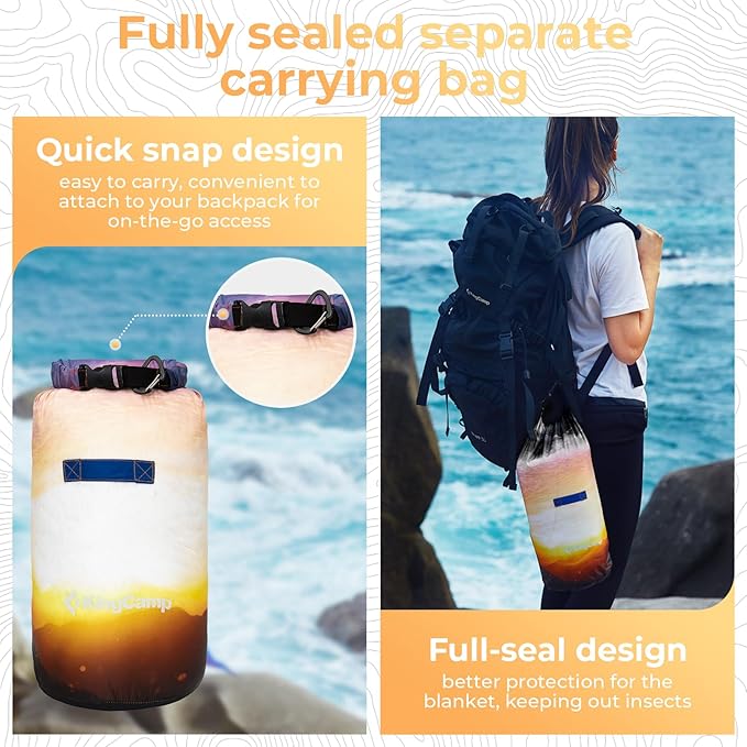 - MULTI-FUNCTIONAL & GIFT - READY: More than just a blanket for camping, it also works as a picnic mat, travel pillow, emergency sleeping bag, or office throw. The tightly woven fabric resists pet hair and is machine washable for easy care. Lightweight and compressible, this camp blanket packable design fits perfectly into daily life and travel. Its stylish look and practical function also make it a thoughtful gift for family, friends, or outdoor lovers.