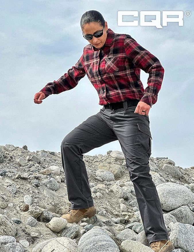 CQR Women's Flex Stretch Tactical Pants, Water Resistant Ripstop Cargo Work Pants with Pockets for Outdoor & Hiking