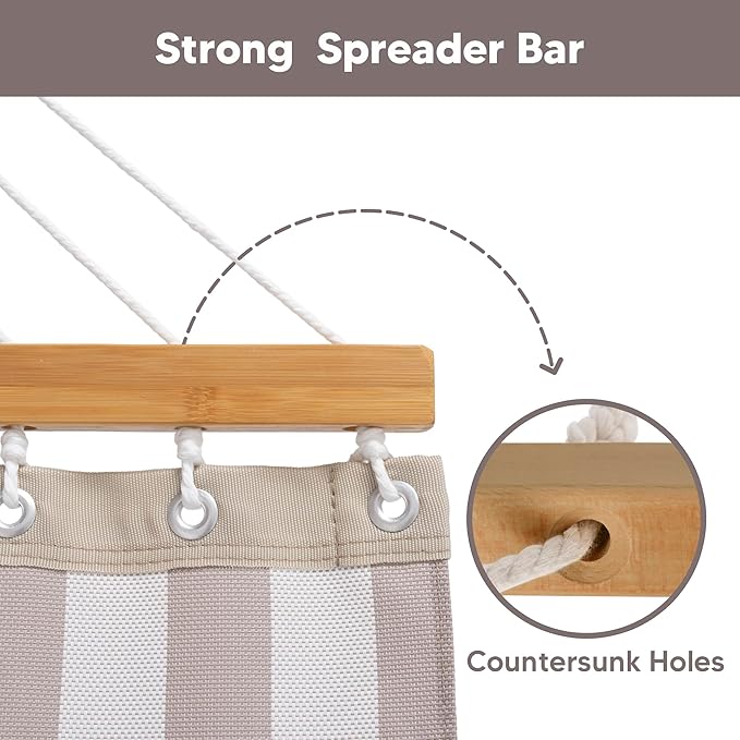 - Strong Spreader Bar: 55 inch spreader bars are more stylish and stable, giving you a comfy nap without fearing to flop down. Features countersunk spreader bar holes which reduce the severity of the friction between rope and wood