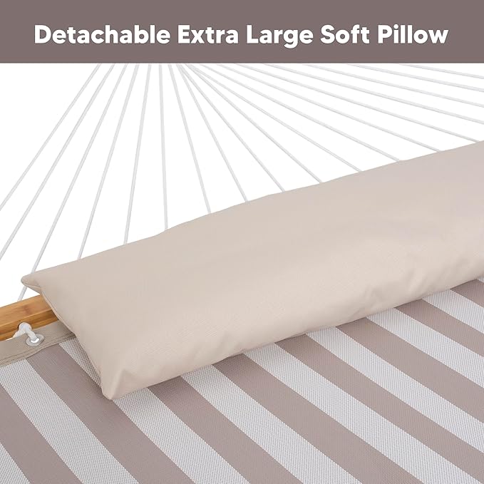 SUNCREAT Double Hammock with Stand Included, Outdoor Portable Hammock with Stand, Light Gray Stripes
