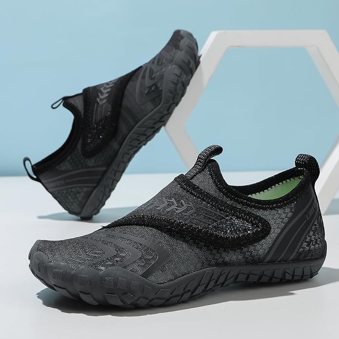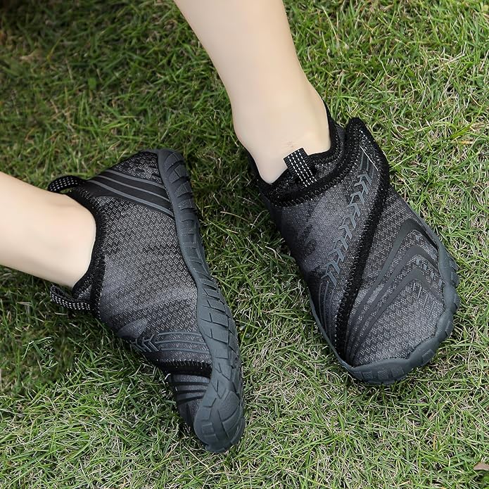 - Barefoot-Like Experience: These water shoes offer a soft and elastic feel, giving your kids the freedom to move and play comfortably. The toe design ensures a natural and barefoot-like experience, promoting healthy foot development.