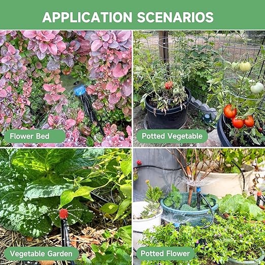 - Two Sprayer Varieties: Tailor your watering with 15 drip emitter streams and 15 drip emitter vortexes. Perfect for adjusting water flow to meet the diverse needs of your garden, ensuring healthy plant growth.