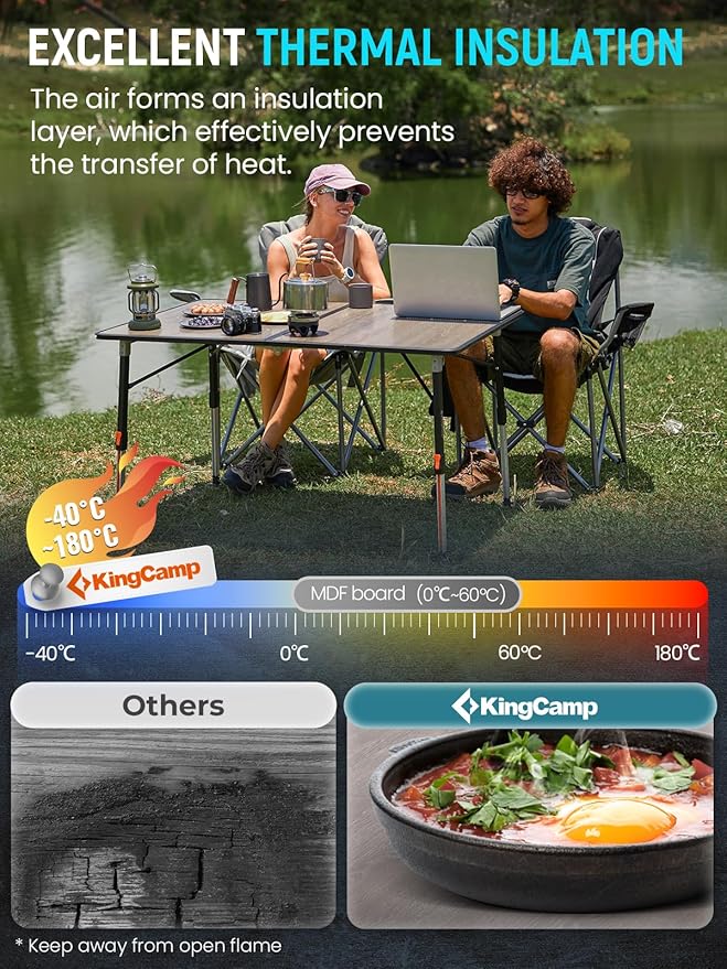 - DURABLE FIBERGLASS TABLETOP: Crafted with a high-strength 3D honeycomb fiberglass composite, this folding table camping is lightweight yet robust. The UV-resistant and waterproof surface ensures easy cleaning and long-lasting use, while aluminum-reinforced edges enhance durability.