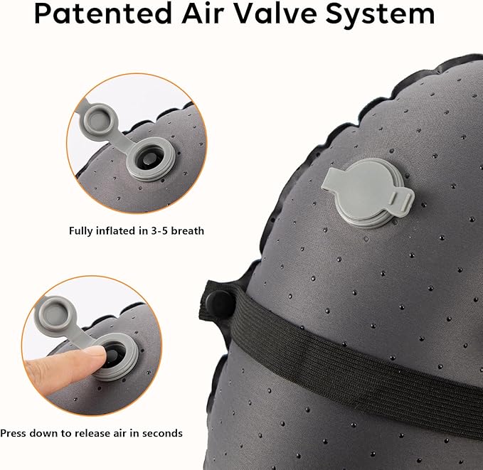 - Anti-Slip Design: It is made of thickened TPU material, effectively preventing air leakage. The back of the air pillow is equipped with anti slip adhesive points. An additional elastic band can prevent the pillow from moving around