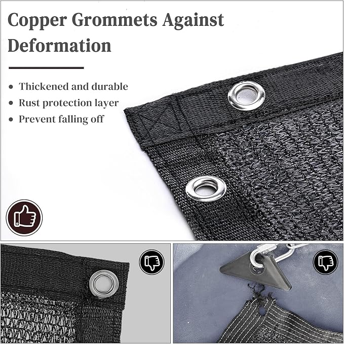 - Easier Installation: Our sunshade cloth increase the number of fixed copper buckles, and there are 2 buckles at each corner. The buckles on four sides are evenly distributed every 3.3ft to ensure uniform stress, so you only need to hang or fix the rope easily