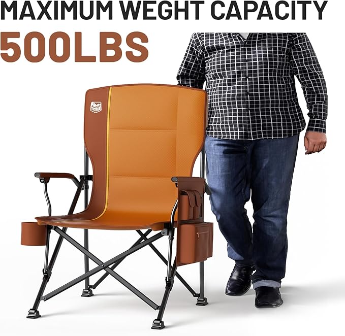TIMBER RIDGE Oversized Folding Camping Chair High Back Heavy Duty for Adults Support up to 500lbs with Cup Holder, Side Pocket Cooler Bag