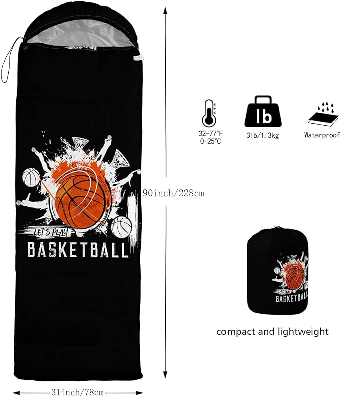 - Cartoon Sports Ball sleeping bags For All Seasons- Our camping sleeping bags are designed to give you a good night's sleep. Ideal for spring,summer,fall,and winter,rated from 32°F to 77°F (optimal comfort temperature is 50°F to 65°F). Stay comfortable and warm in any condition at normal altitude. Can be used for any outdoor adventure,class camping,summer camps,couch surfing,indoor blanket,and as an emergency blanket for vehicles.
