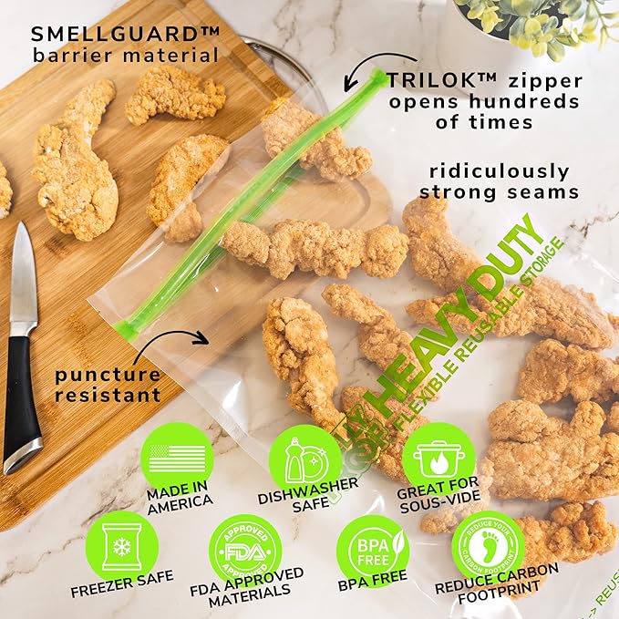 - Made in the USA, Safe & Wise Choice - Smelly Proof Flat Extra Large Ziplock Bags are Freezer Bags & Reusable Bags for Boiling Food. No PEVA, BPA-free, Exceeds USDA Standards, Ideal for Storing a Variety of Items,