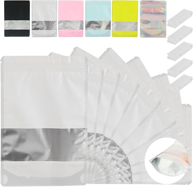 200 Pcs Mylar Bags for Food Storage 6x9 Mylar Bag with Window, Foil Stand Up Resealable Bags for Food, Smell Proof Bag Freeze Dried Candy Packaging Sealable Pouch Jewelry Bracelet Pouch White