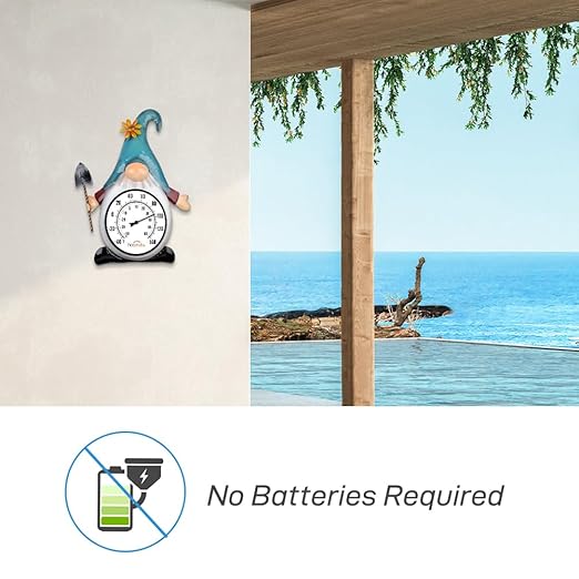 Indoor Outdoor Thermometer, Gnome Wall-Mounted Thermometer Waterproof for Patio Garden Yard & Living Room, No Battery Needed