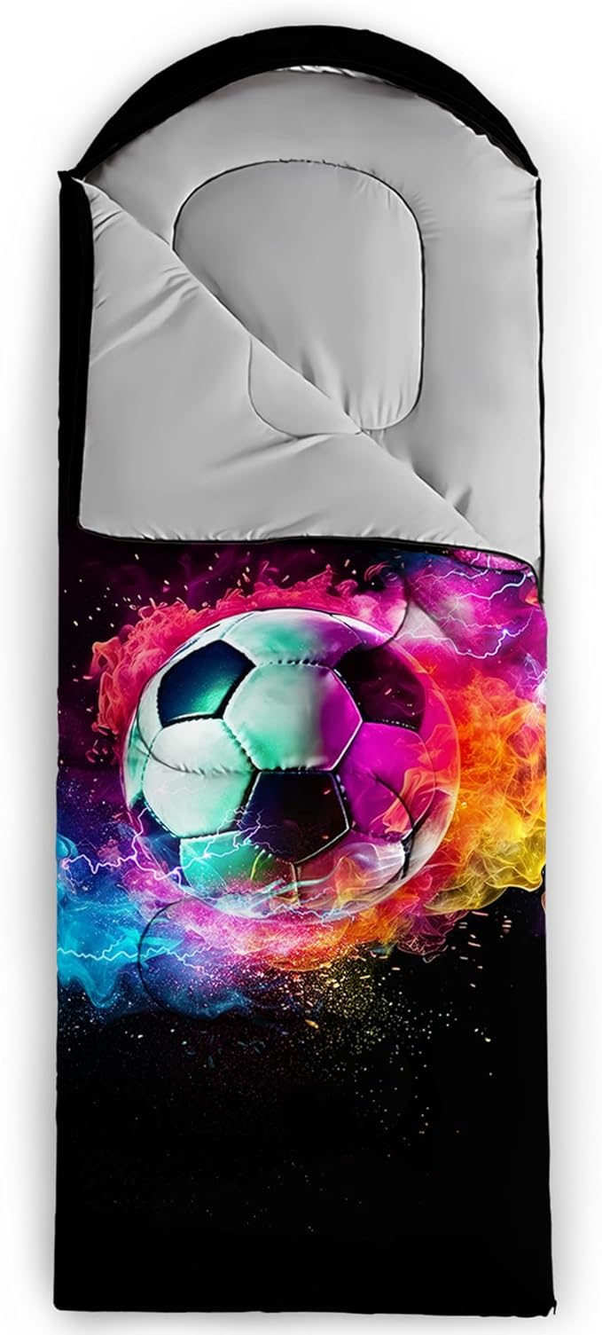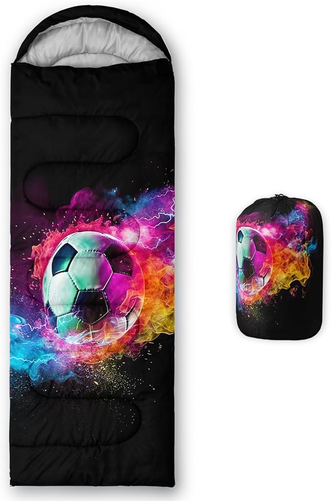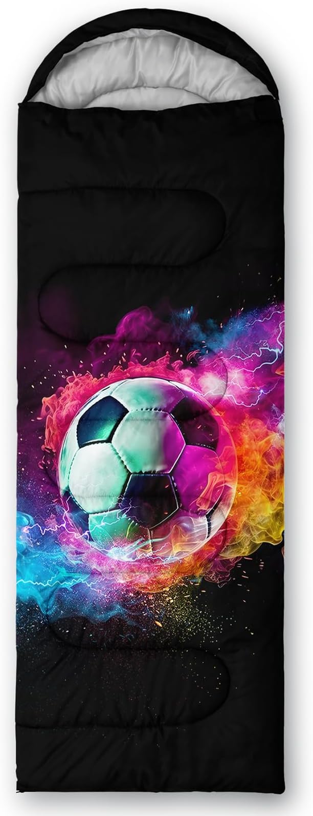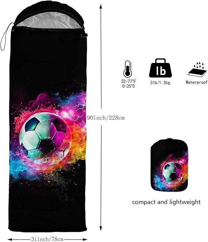 - 【Fits For 3 Seasons】: Size - 31 by 90 inches (W x D). Our Colorful Football sleeping bag can be used in 3 seasons with a design temperature of 32℉-77℉(0℃-25℃). These Sleeping bags also have a weather resistant waterproof design to keep you warm and prevent you from any dampness.