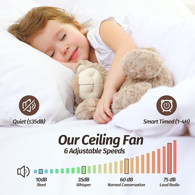 - Reversible DC Motor: Forward rotation in summer to reduce room temperature; reverse rotation in winter to promote indoor air circulation. No matter how the fan runs, it will not make a clicking sound or shake