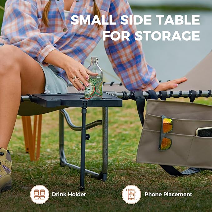 - Removable Pillow and Side Table: Our lounge chair for outside comes with a wide, adjustable padded pillow for headrest, lumbar support and other support purposes. Plus, functional side tables with built-in cup holders and phone slots keep your essentials at arm's reach.