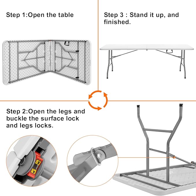 - ✅【Customer Service:】: We always do our best to provide excellent service for you.If you’re not satisfied with 8 foot folding table, please get in touch with us. We will help you immediately.